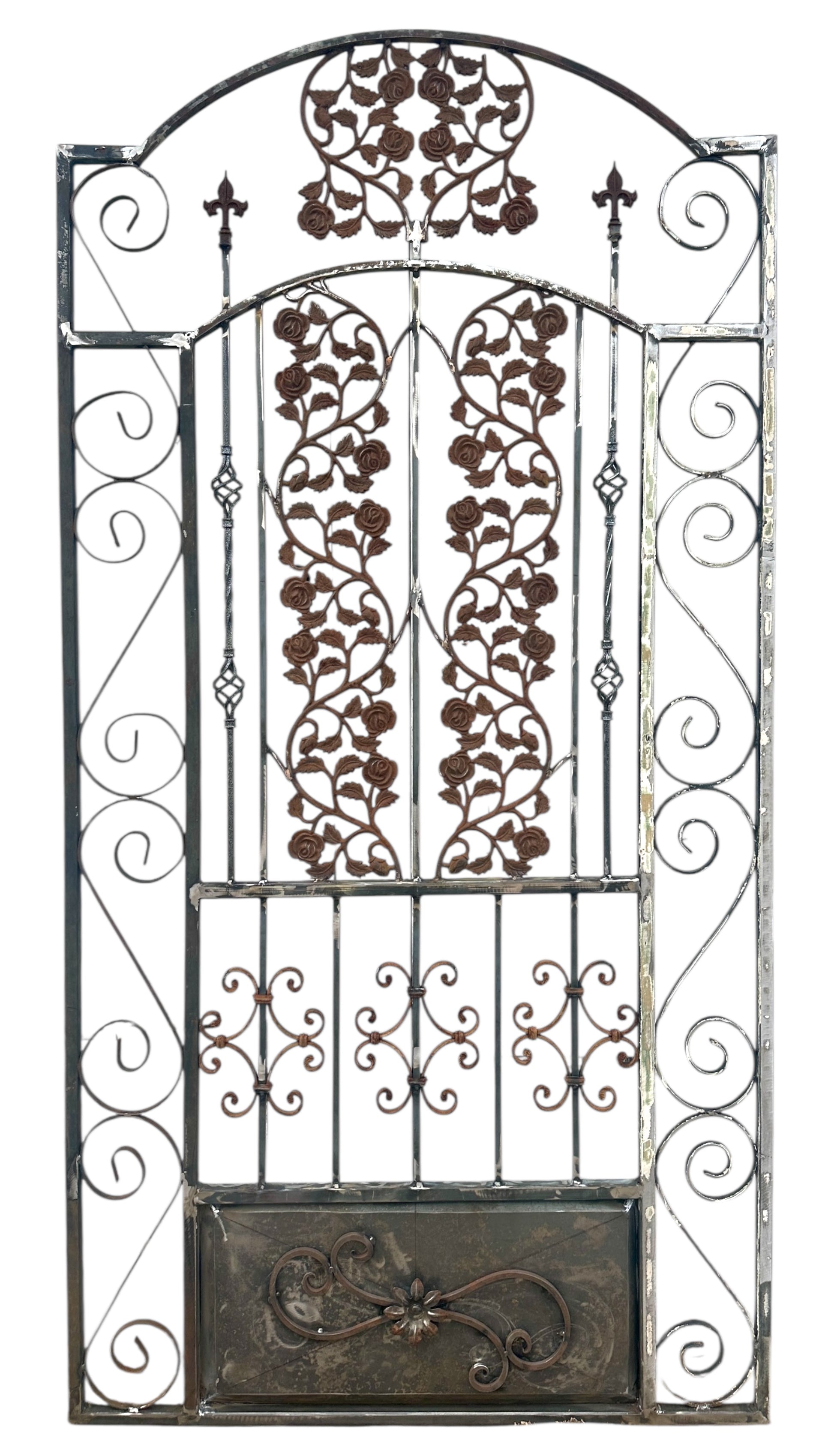 7.5 Ft Tall Custom Built Arched Top Steel Gate w/ Antique Cast Iron GA20600
