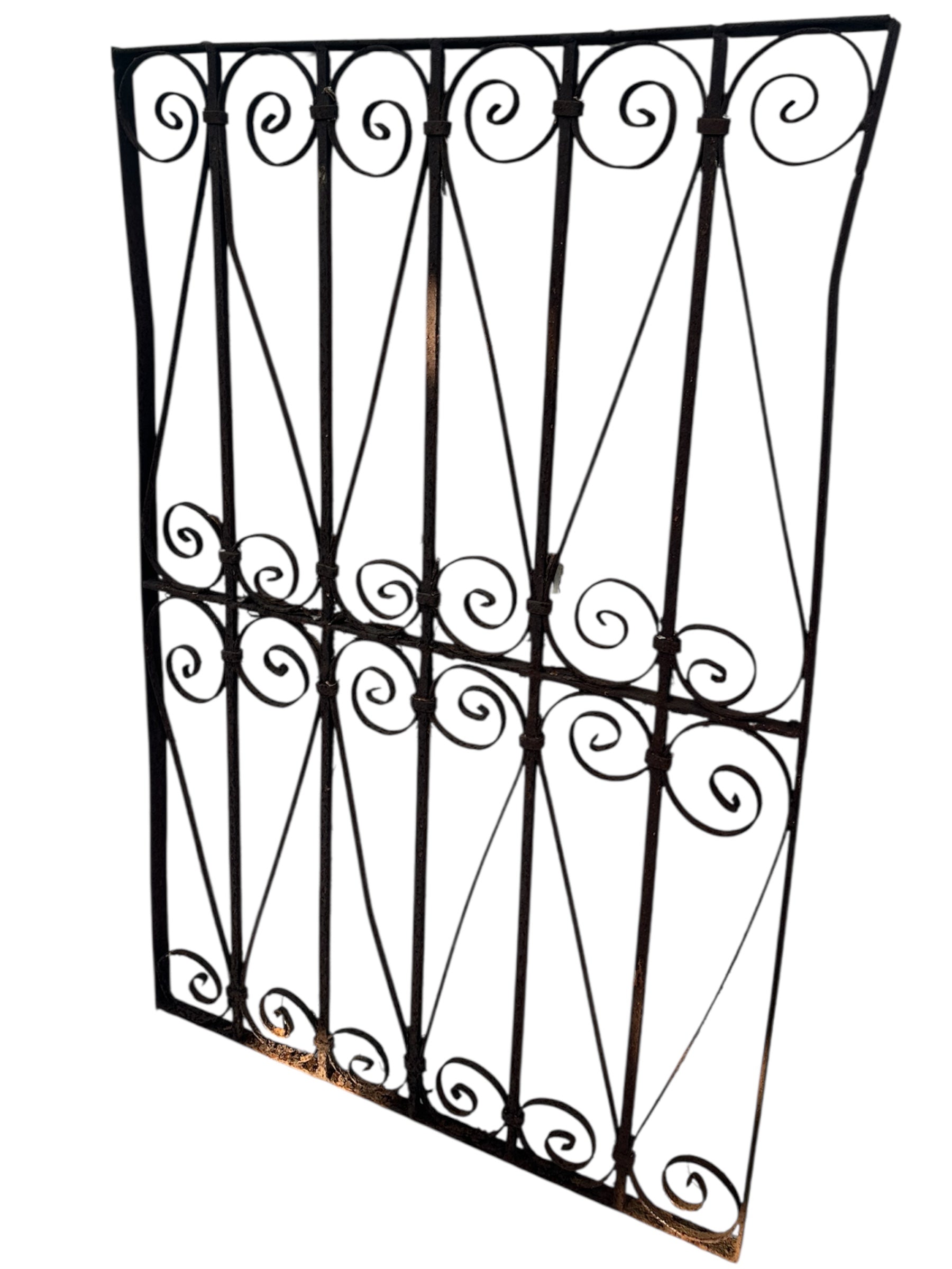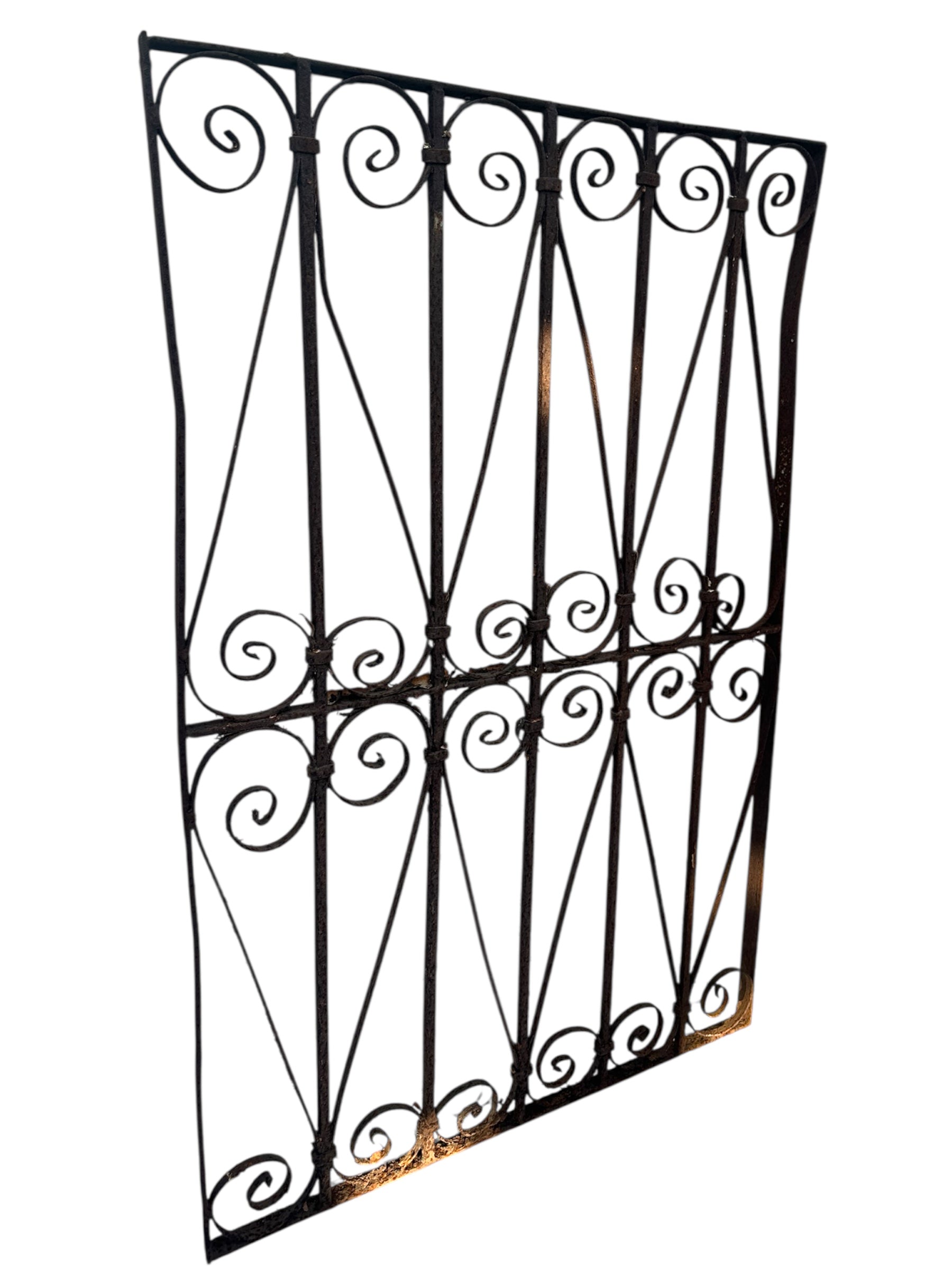 This Antique Wrought Iron Gate is a striking piece of architectural and garden décor. Crafted from durable wrought iron, this gate stands at 50 inches tall, adding a touch of history and elegance to any space.