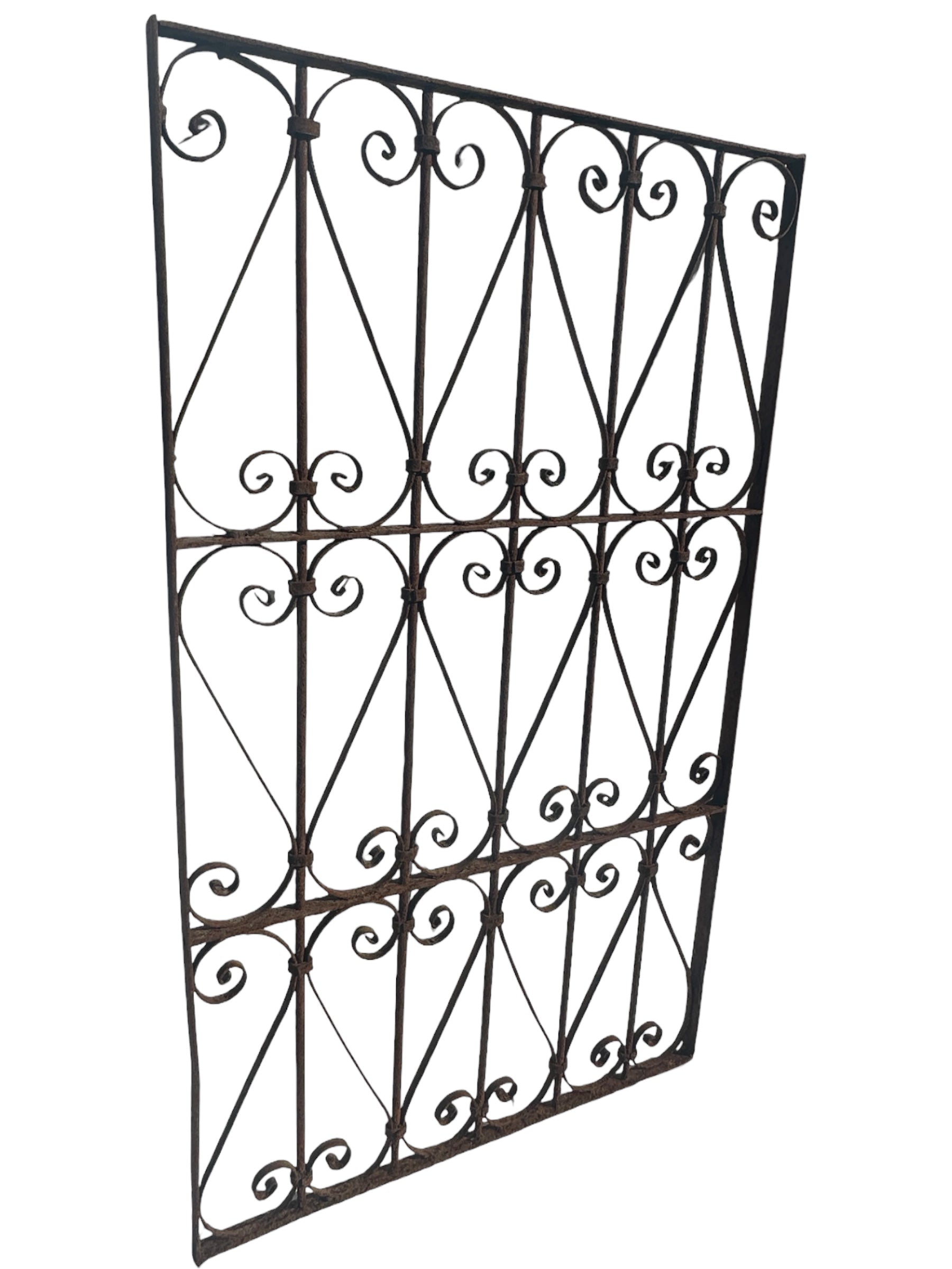 This Antique Wrought Iron Gate is a striking piece of architectural and garden décor. Crafted from durable wrought iron, this gate stands at 53 inches tall, adding a touch of history and elegance to any space.