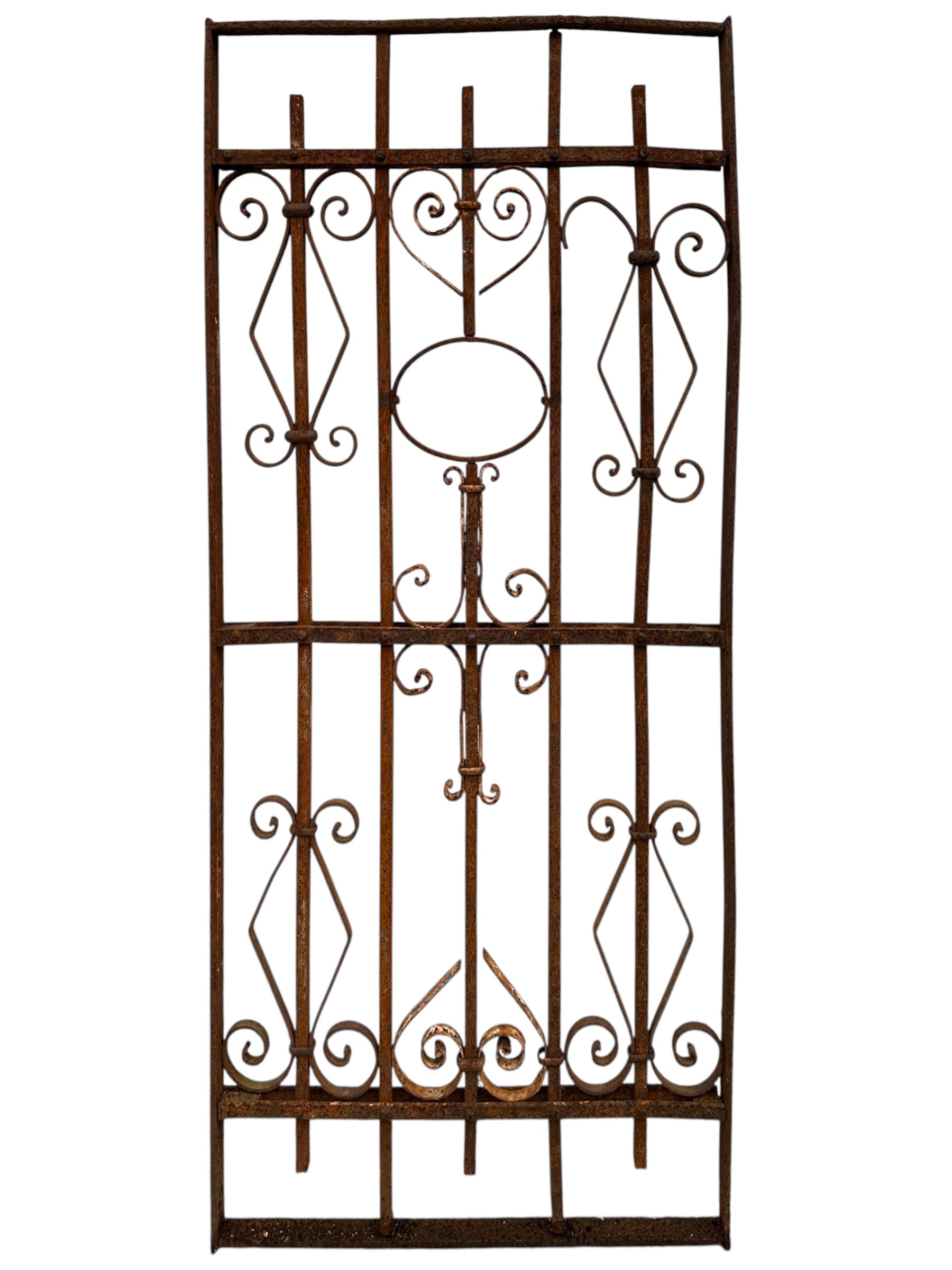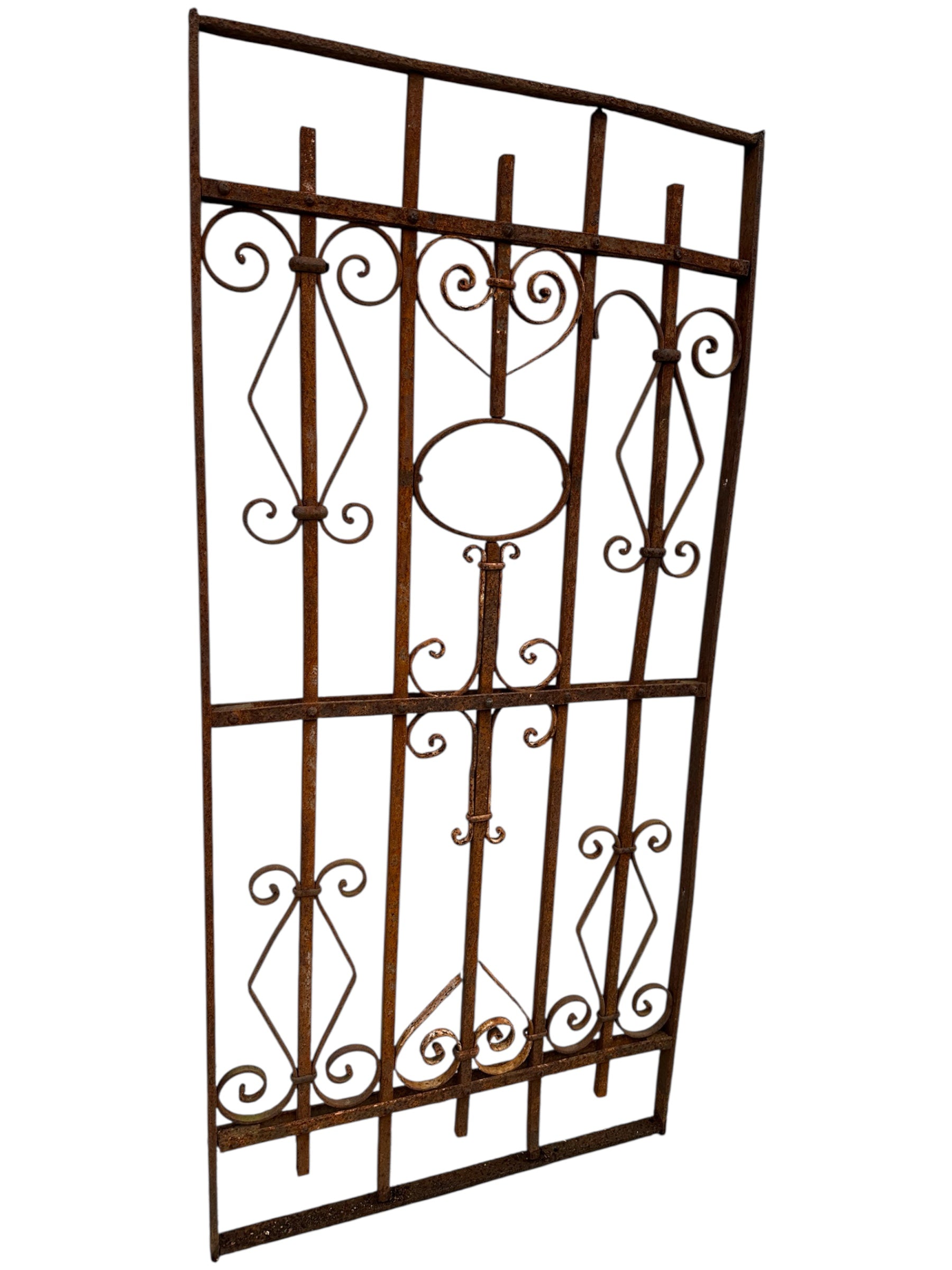 This Antique Wrought Iron Gate is a striking piece of architectural and garden décor. Crafted from durable wrought iron, this gate stands at 55+ inches tall, adding a touch of history and elegance to any space.