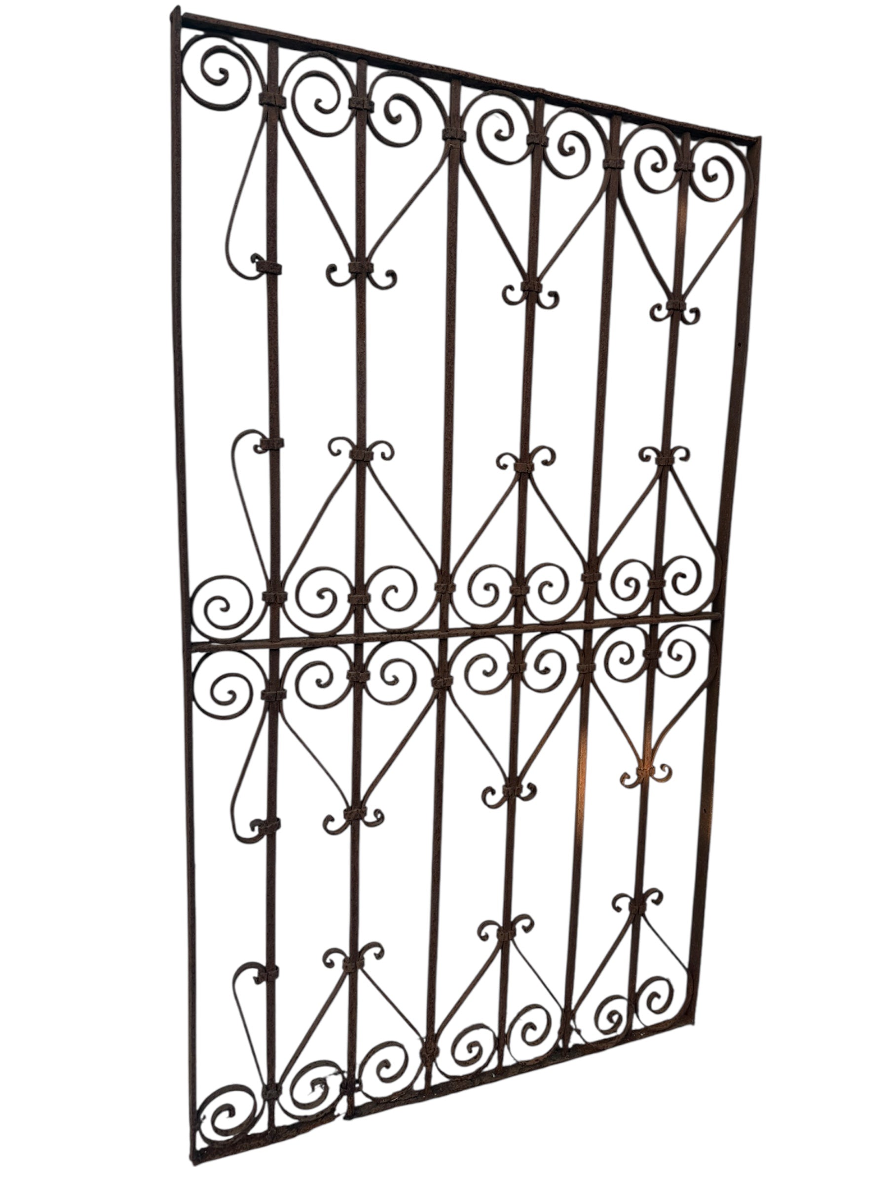 This Antique Wrought Iron Gate is a striking piece of architectural and garden décor. Crafted from durable wrought iron, this gate stands at 59" inches tall, adding a touch of history and elegance to any space.