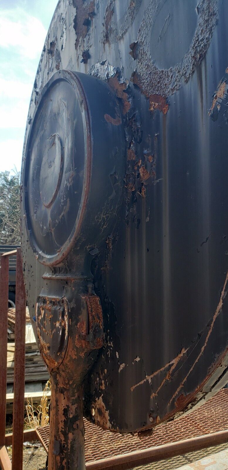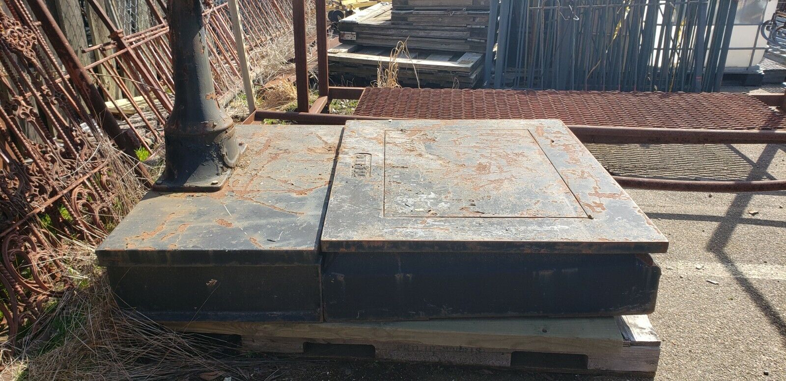 It is in salvaged condition and measures 108" tall. The bottom scale base measures 63" long by 46" wide. The upper face dial is 55" in diameter.
