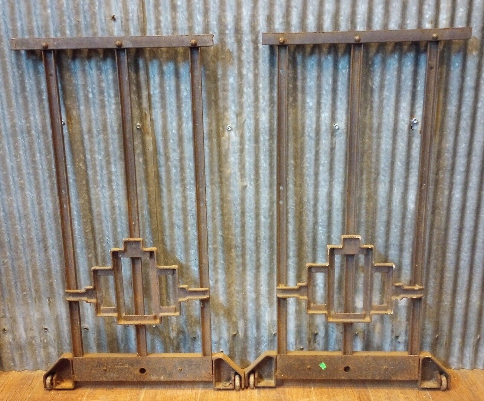 Pair of Art Deco Cast Iron Machine Legs with Casters 29 5/8" Tall x 18" Wide