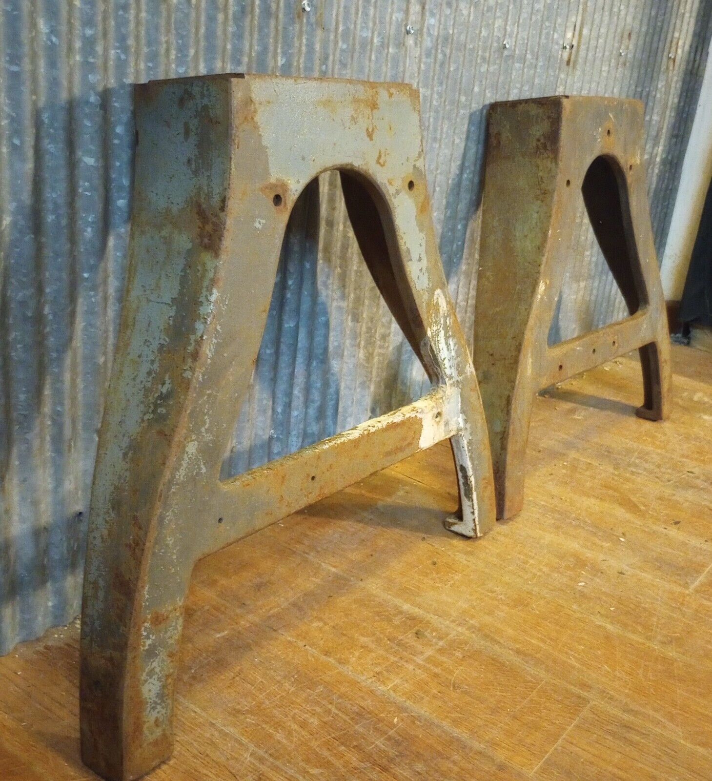 Made of cast iron, these are fantastic machine legs. In excellent condition, each one measures 20 3/4" tall - with the bottom width at 22 1/2" and the top width at 10 1/4".