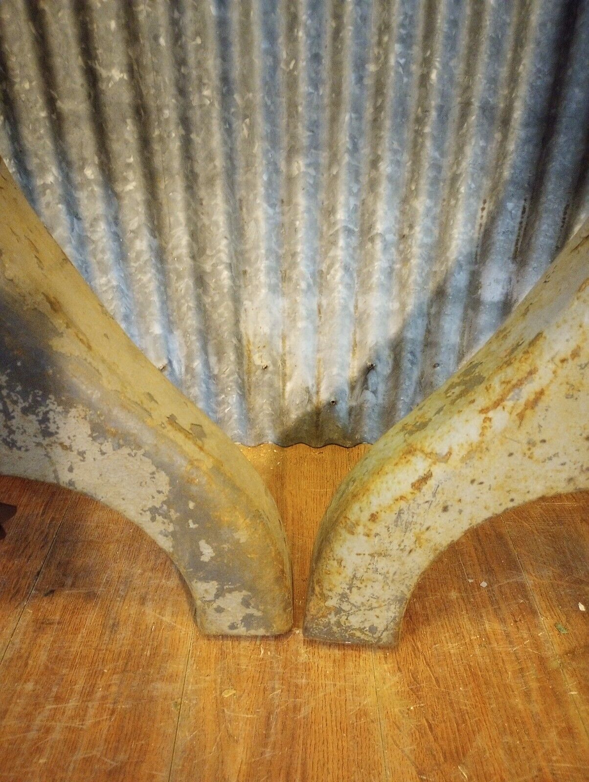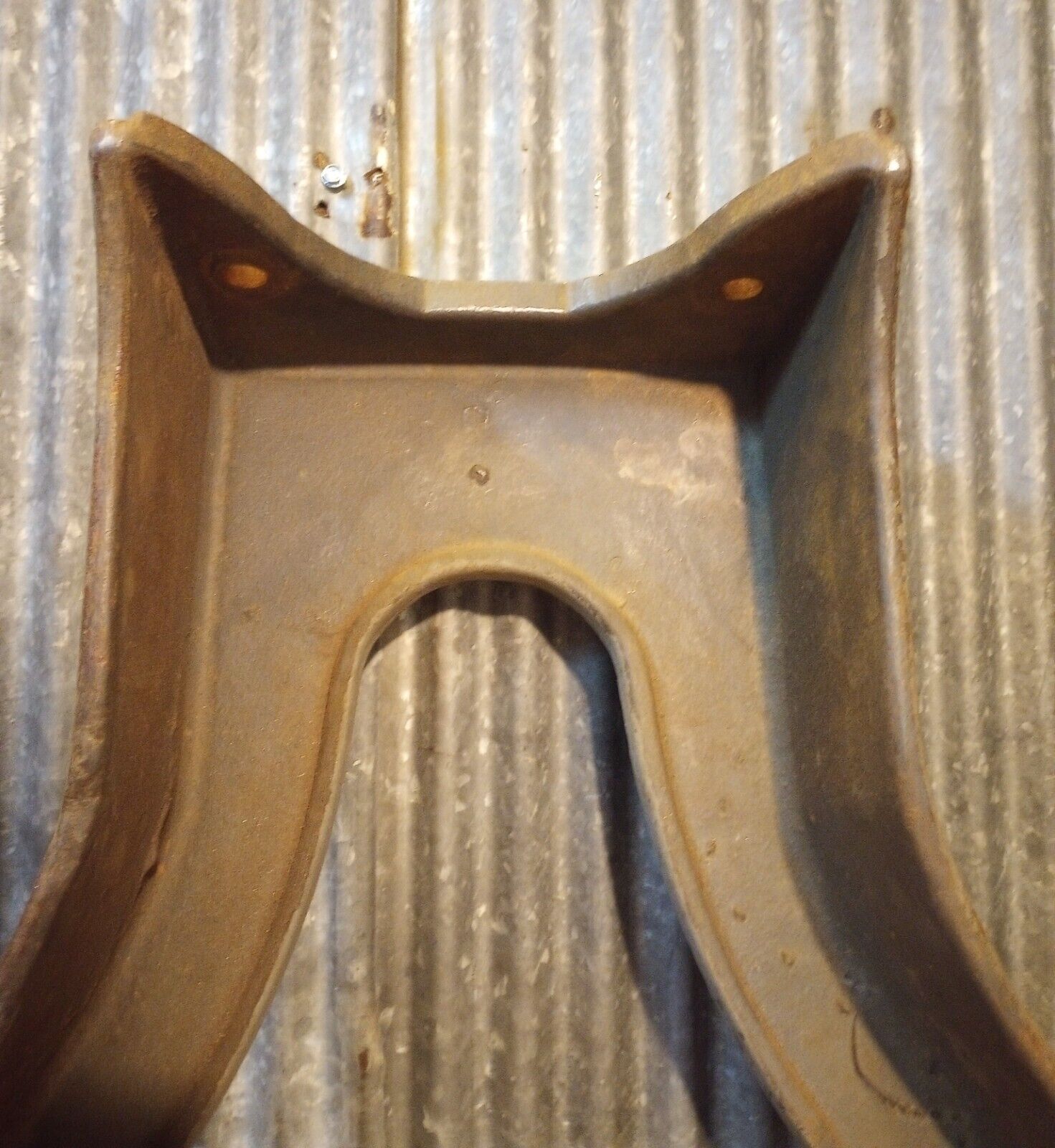 Recently salvaged from an industrial factory, these cast iron machine legs have a great design. Previously painted gray with most of the paint wearing off.