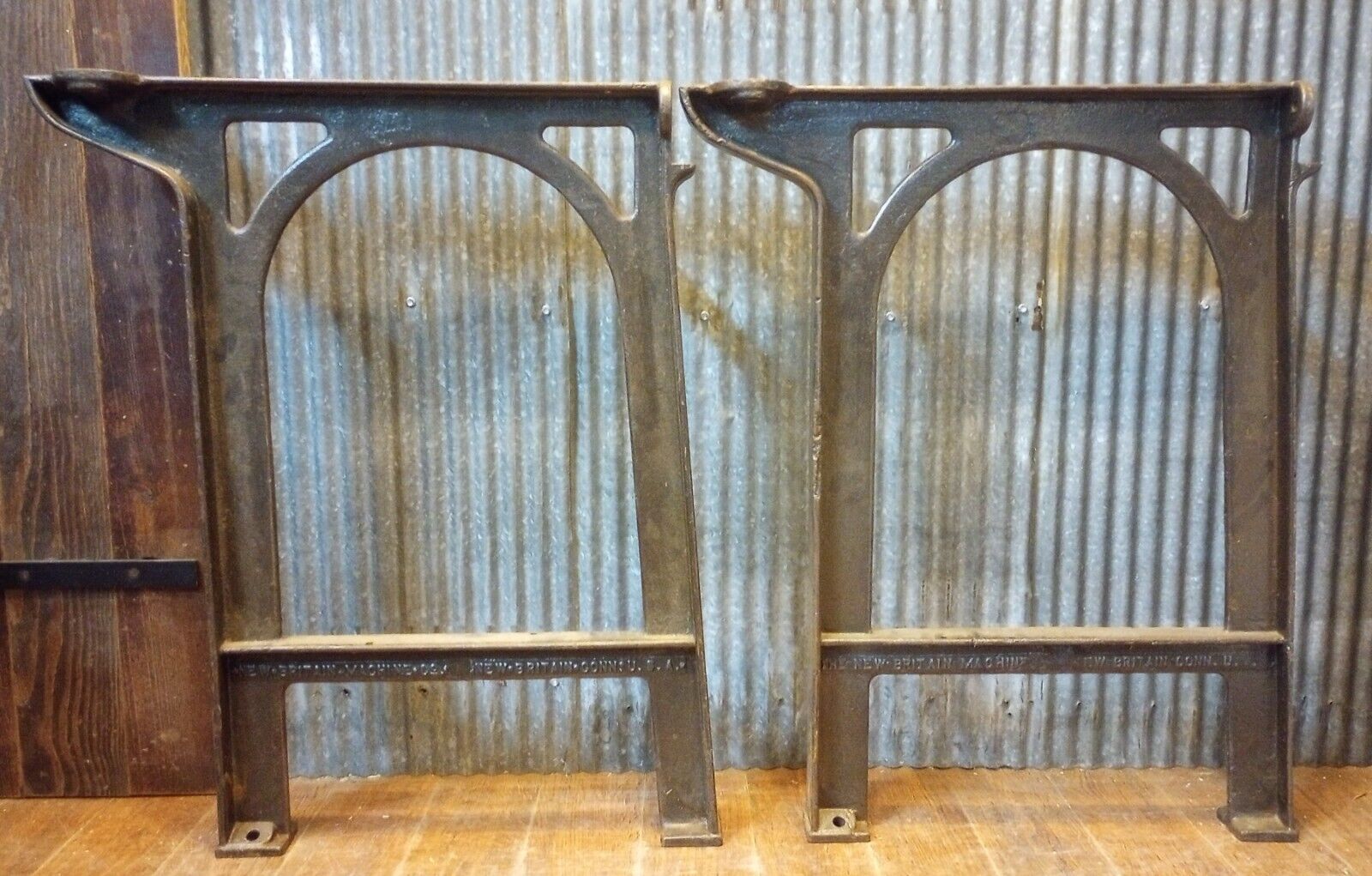 Made of cast iron these industrial factory machine legs have a bit of an Art Nouveau flair.