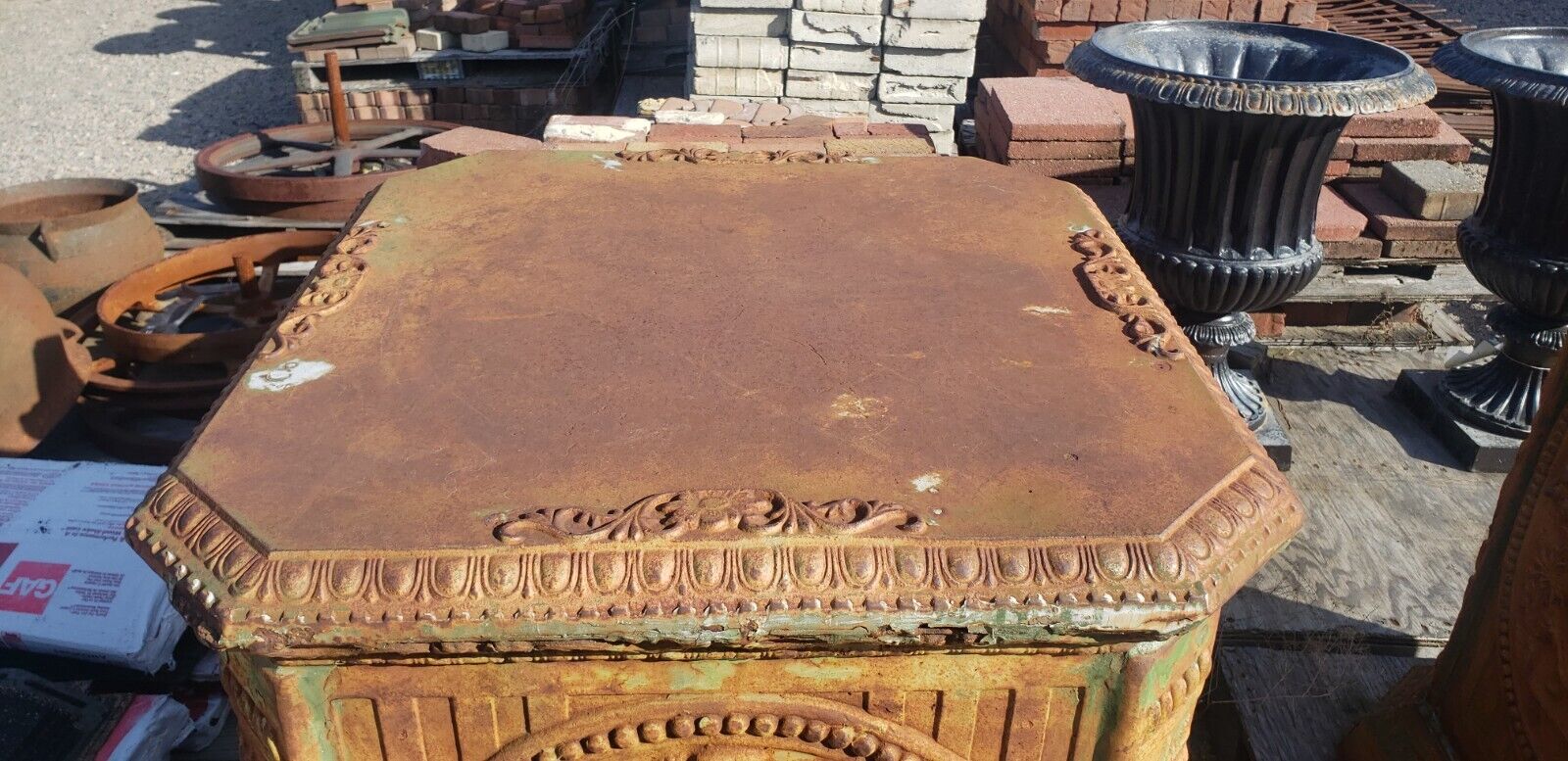 This pair of cast iron pedestals have amazing design and details. Huge in size - measuring 39 3/8" tall x 35 3/8" square. The top flat surface area measures 25 5/8" by 31 1/4".