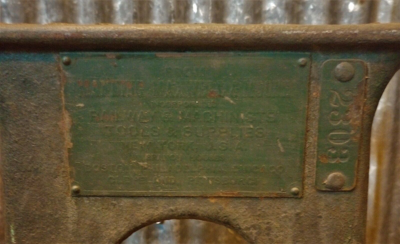Made of cast iron these industrial factory machine legs were made by the Manning Maxwell & Moore Inc. Railway & Machinists Tools & Supplies of New York. There is a square brass plate with this info engraved as well as #2303.