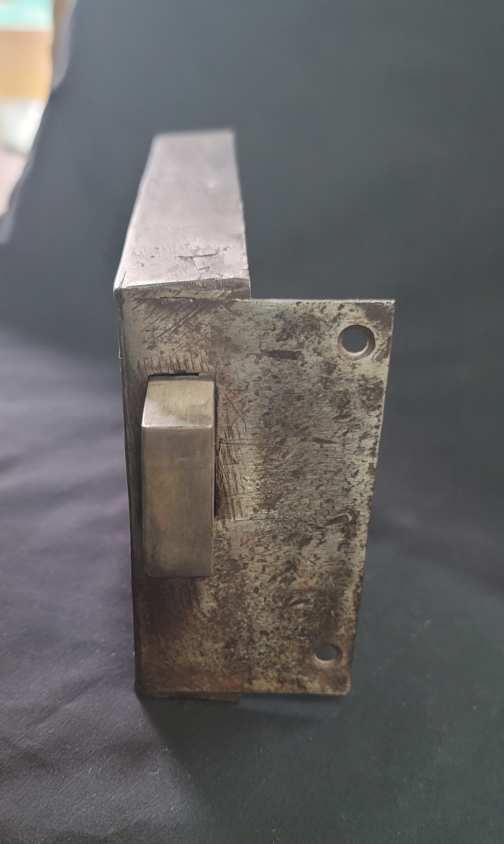 Restored Right Side Rim Lock Set w/ Keeper & Key 7 1/8" wide x 4 3/8" GS00989